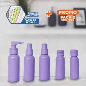 Pack2 Set de Envases de Viaje 7 Piezas Lila Resistentes y Duraderos