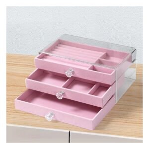 Joyero 5 Niveles Terciopelo y Acrilico Rosado para Organizar Collares y Pulseras