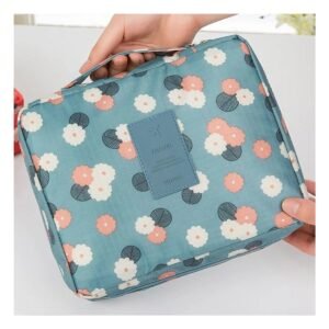 Neceser Viajero 20x15CM Azul Acero con Diseño Flores para Maquillaje