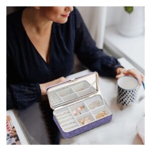 Pack2 Joyero Lila con Espejo 16×8,5×5,5cm Diseno Moderno para Guardar Joyas