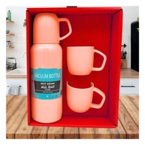 Termo de 500ml con 3 Tazas Rosado Acero Inoxidable Portatil Moderno