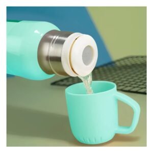 • Termo de 500ml con 3 Tazas Verde Agua Acero Inoxidable Portatil