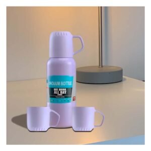 Pack2 Botella Insulada 500 ml con 3 Tazas Lila para Oficina y Escritorio