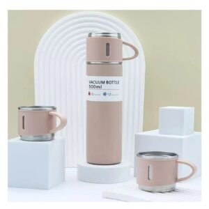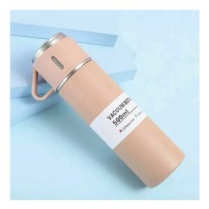 Vaso Termico de 500ml con 3 Tazas Rosado Acero Resistente Moderno Y+Regalo Sticker