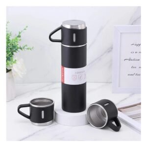 Botella Termica Individual con Dos Tazas para Cafe en Casa Negro