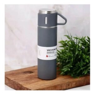 • Botella Termica Individual con Dos Tazas para Bebidas Calientes Plomo