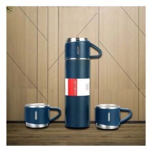 Cantimplora Termica Individual con Dos Tazas para Viajes y Casa Azul Y+Regalo Sticker