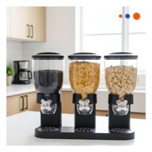 • Dispensador triple de granos negro para cocina y hogar moderno con capacidad