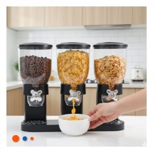 Dispensador triple de granos negro para cocina y hogar moderno con capacidad