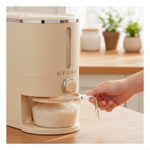 • Dispensador de Granos 10L de Color Crema y Transparente para Cocina y Mesa