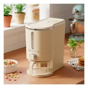 Dispensador de Granos 5L de Color Crema y Plateado para Cocina y Mesa