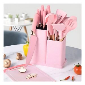 Set Cocina Profesional en Verde con 18 Piezas de Acero Inoxidable y Tabla