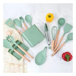 Set Cocina Profesional en Verde con 18 Piezas de Acero Inoxidable y Tabla