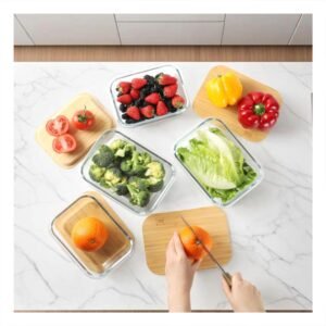 Recipientes Rectangulares con Tapa de Bambu para Cocina 370ml 640ml 1040ml Transparente