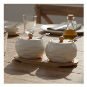 • Set de 2 Recipientes Blanco con Tapa Bambu 19,9cm Cocina y Almacenaje Diario