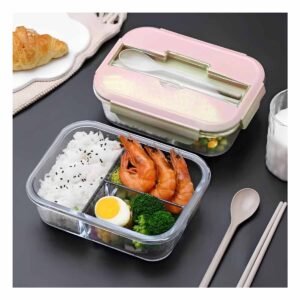 • Contenedor de Vidrio con Divisiones para Snack Saludable Tapa Verde Y+Regalo Sticker