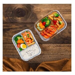 Pack2 Bandeja Hermetica de Vidrio con 3 Divisiones