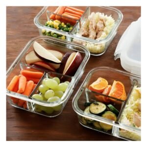 Recipiente de Vidrio con 3 Divisiones para Alimentos en Cocina