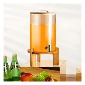 Contenedor de Bebida 4L con Base de Madera y Tapa Metal Transparente Y+Regalo Sticker