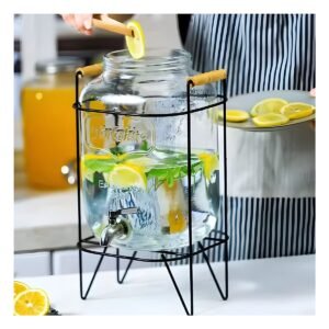 Recipiente Transparente 5 L con Base Metalica Negra para Bebidas Frias