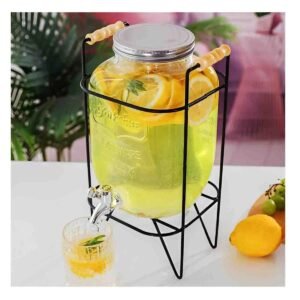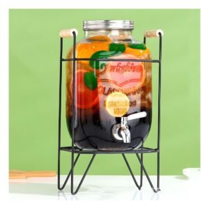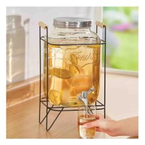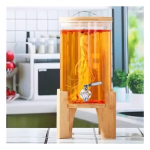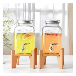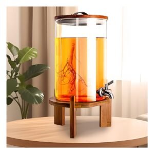 Dispensador de Bebida 4L con Base de Madera y Tapa de Metal Transparente