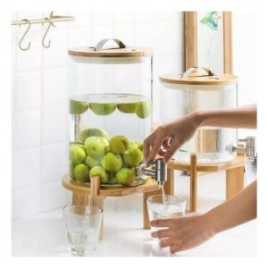 Jarra Dispensadora 8L Transparente con Base de Madera Practica para Reuniones Y+Regalo Sticker