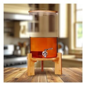 Dispensador de Bebida 10L con Base de Madera Transparente para Hogar