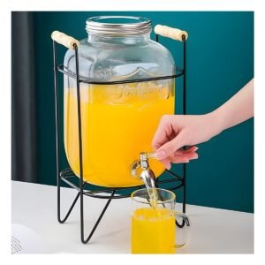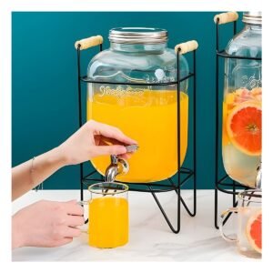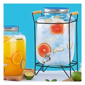 Contenedor de Bebida 4L con Base de Madera y Tapa Metal Transparente Y+Regalo Sticker
