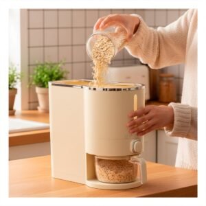 Dispensador de Granos Plateado y Crema 5L para Guardar Alimentos Y+Regalo Sticker