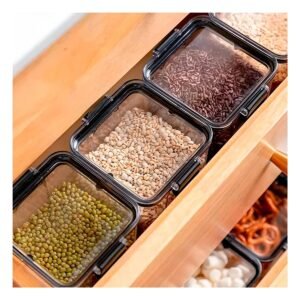 Pack2 Contenedores de Cocina Acrilicos con tapa palanca Negra Transparente Set 5