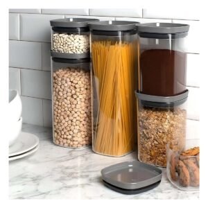 Set 4 Piezas de Almacenamiento en Acrilico con Tapa de Plastico para Cocina y Hogar