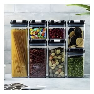 Contenedores de Alimentos Acrilicos con Tapa Palanca Negra Set 7 Transparente