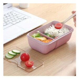 Pack2 Contenedor de Vidrio 2 Divisiones con Cubiertos Tapa Rosado para Transporte Seguro