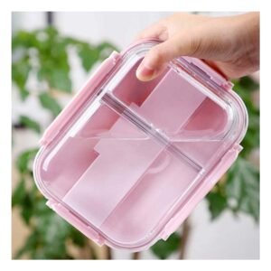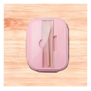 Taper de Vidrio con Cubiertos 2 Divisiones Tapa Rosado para Almuerzo Saludable