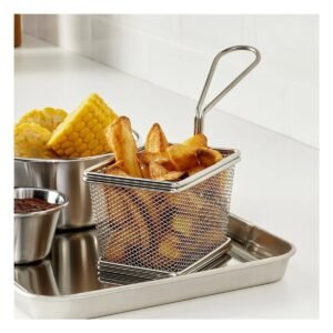 Pack2 Canastilla Metalica para Frituras Plateada 10x8x7 cm Cocina Casera