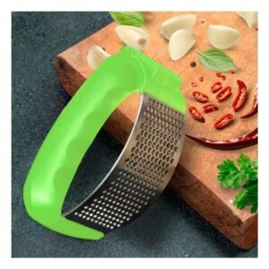 Triturador de Ajo con Mango de Plastico Verde Limon y Plateado para Cocina Organizada