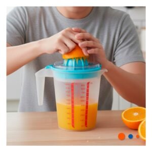 Exprimidor Manual para Naranja con Recipiente Medidor 1000 ml Celeste Y+Regalo Sticker