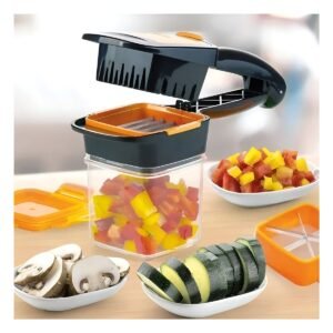 Picador Multifuncional de Frutas y Verduras Negro y Naranja para Cocina Facil
