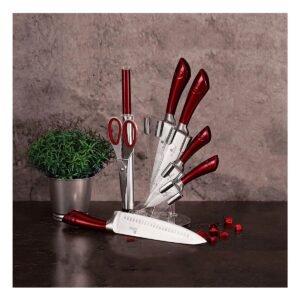 Set de Cuchillos de 7 Unidades Color Rojo en Acero Inoxidable con Mango Ergonomico para Cocina