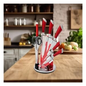 Set de Cuchillos de 7 Unidades Color Rojo en Acero Inoxidable con Mango Ergonomico para Cocina