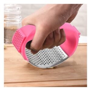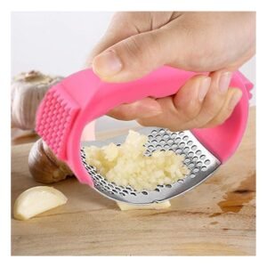 Triturador de Ajo con Mango de Plastico Rosado y Plateado para Cocina Organizada
