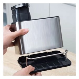 Dispensador de Jabon Liquido 3 en 1 con Soporte y Organizador Plateado