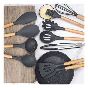 Pack2 Herramientas de Cocina Utensilios de Silicona Negro Duraderos y Faciles de Limpiar
