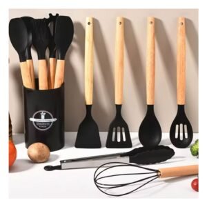 Set Unico de Utensilios de Silicona Negro Duraderos y Colores Llamativos Y+Regalo Sticker