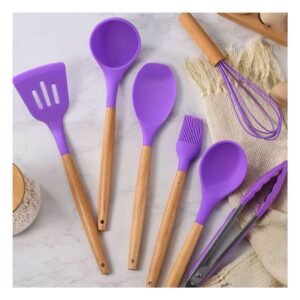 Set Completo de Utensilios de Silicona para Cocina Resistente y Color Morado
