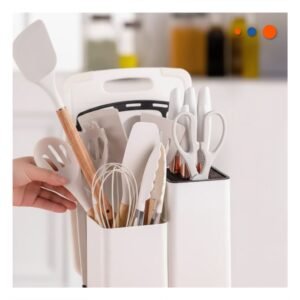 • Set Funcional con 18 Piezas de Cocina Blanco en Silicona y Madera para Espacios Organizados