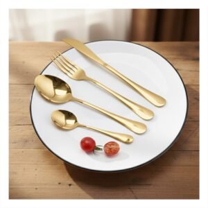 Juego 16 Cubiertos con Caja de Presentacion para Mesa Elegante Dorado