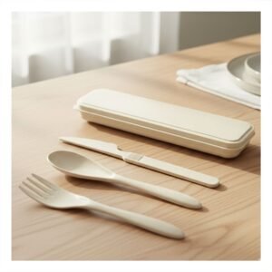 Pack2 Cubiertos Reutilizables Set de 3 Piezas con Estuche Beige