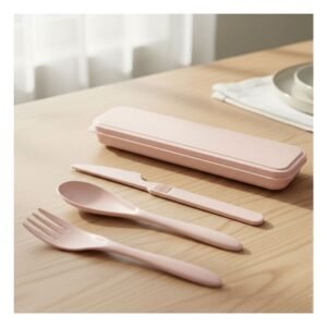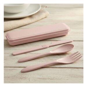 Set de 3 Cubiertos Ecologicos con Estuche Rigido Portatil Rosado Y+Regalo Sticker