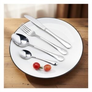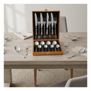 Pack2 Vajilla con 16 Cubiertos para Mesa Moderna con Caja Plateado